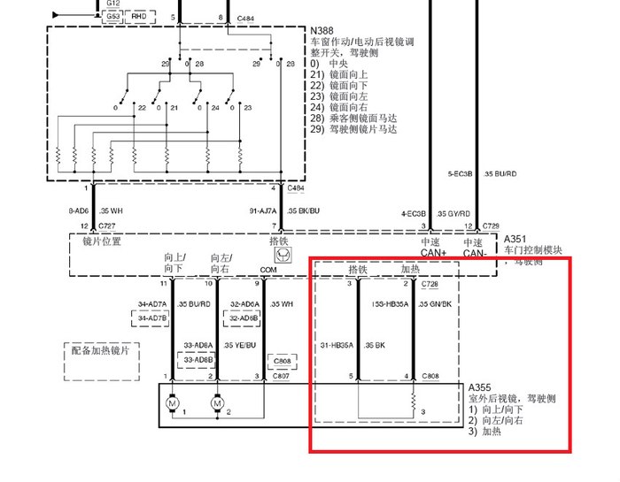 写在前面 小福跟着我已经两年有余了,每次都风里来雨里去的,也没有掉链子,心里很感激,当然也要倾情地呵护。 经典福克斯照地灯本是原车电脑自带功能,没晓得是成本问题还是认为因素,到了CA手里已经是国内款全系无此配置。现在加装照地灯的车友也挺多的,大都是鹰眼LED,此LED安装方便亮度也够亮,只是偶接受不了突出滴外观,就像看见爱疯6上的突出镜头就想锯开一样,而福特旗下的致胜方形照地灯看着体积顶大,好大块,于是经过大量的网罗信息,终于,论坛里一位车友的帖子引起我的注意: 渔夫折腾第一弹:[多图]打造老福完美照地灯+电加热后视镜+基于原车cd完美蓝牙模块 http://club.autohome.com.cn/bbs/thread-c-364-22825604-1.html 该车友使用了斯柯达系的三角照地灯 从镜子内部安装,虽然需要拆开后视镜,而且三角孔开起来也挺麻烦的,但是为了实现完美渗入,完美外观,于是决定: 搞!搞!搞!!!!!!!!!!!!!!!!!!!!!!!!!!!!!!!! 0. 准备工作 曾几度找寻度娘,终于拿到《福特福克斯原厂电路图》,找到了门控端口C728的电路图,如下图示: