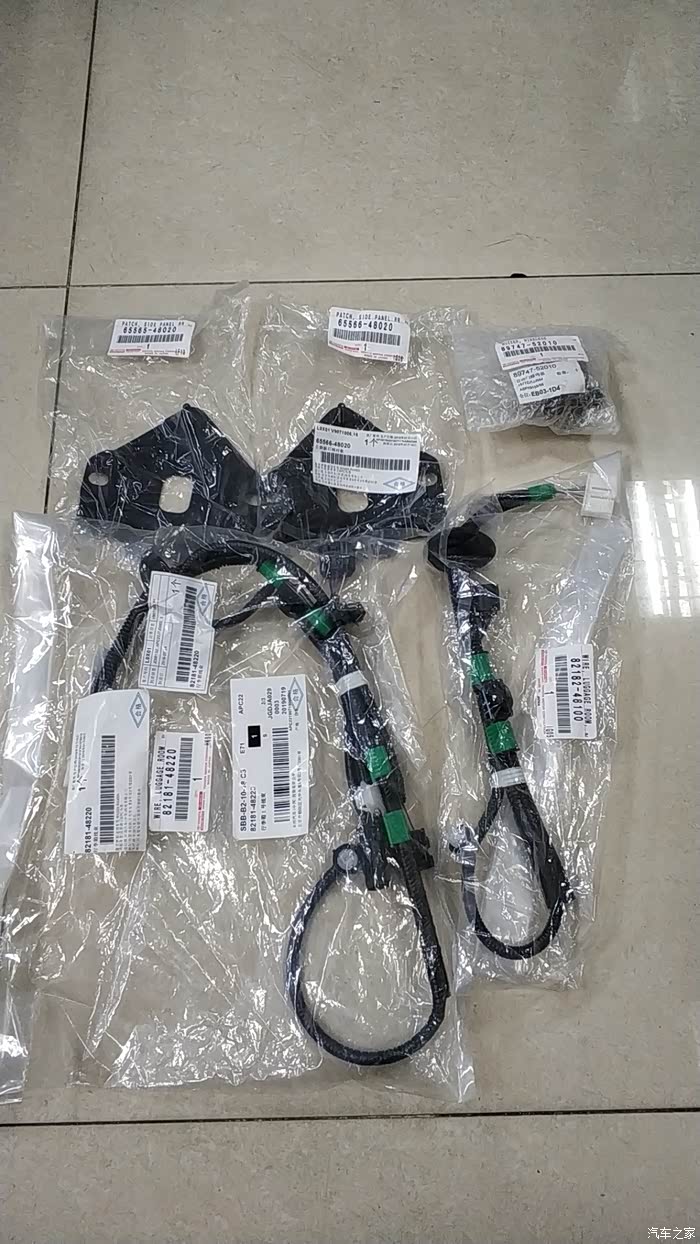 安装BSM,和RCTA,需要用到的配件有:原厂线束,蜂鸣器,探测器,镜片。缺一不可 ,这2个功能典雅版以下都是被***的功能,,这次我安装的镜片,和探测器为拆车件,因为这两样东西,订全新价格比较贵,没有必要。以上都是无损安装,原车都有预留位置,除了了后左右2个探测器需要用螺丝固定,其他都是卡扣安装