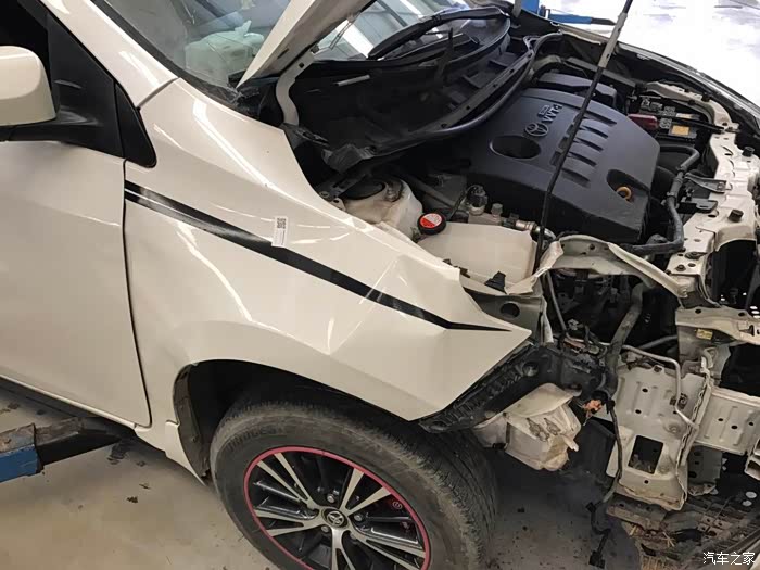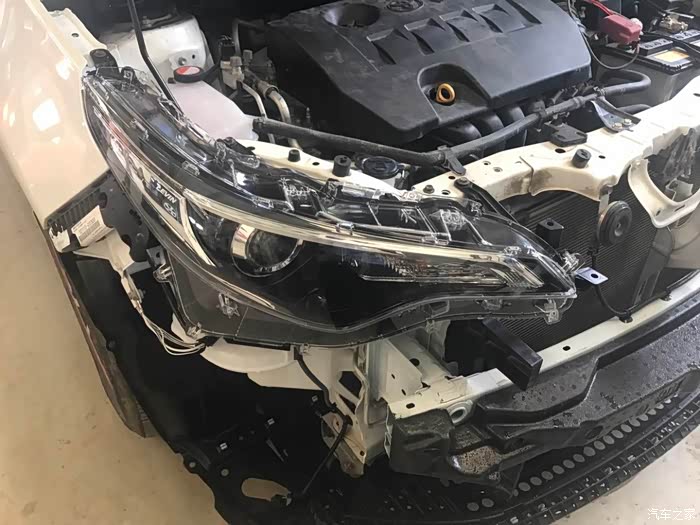 其实说了那么多,这些都是废话,你知道为什么吗?哈哈哈,有的已经猜对了,我想换车子,不,是改雷凌的外观,对,没有错!只是这个换有点意外和无奈,本来是打算自己存点钱,然后改装的,谁知道,来了一场车祸,确实让我有点无奈。5月底在外地发生的车祸,还好车子没有伤到大体和伤人,是不幸中的万幸,情况是这样的,车子是借人开的,在路上撞树了,哎不说了,直接上图吧(同时也说一下自己的看法,车子和老婆不外借,这个是原因的,同时,保险是一定要买的,不管怎么样是一定要买的,如果是价格差不多的话尽量在4S店购买,在此也要感谢一下华翔西江店售后的刘总,真的要感谢一下刘总,从发生车祸,到定损,理赔,拖车(车子是在外地发生的事故)到4S店,维修,所有都是刘总帮忙处理的,自己从来没有跑过;因为之前也报过保险,前前后后都是自己去处理,钱也自己垫付,朋友也不懂怎么样处理(保险跟朋友买的),当时是觉得跟朋友买便宜一点,也支持一下他,所以,如果是价格都是差不多的情况,建议还是到4S店购买,也去会贵一点,但是方便了自己,处理也比较专业。