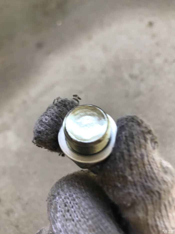 24MM呆扳手卸下放油口螺丝,表面厚厚一层被吸附的铁屑,用手指一摸,类似豆沙的感觉。
