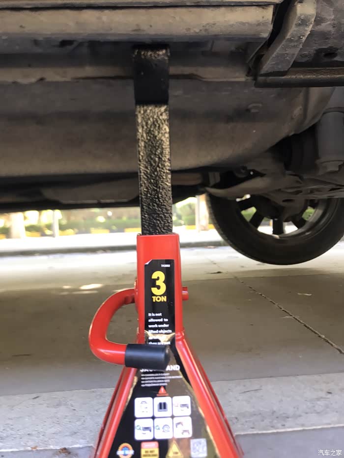 4根3吨支架把车支起来,在车头和车尾用力摇晃,纹丝不动,稳如老狗~~~