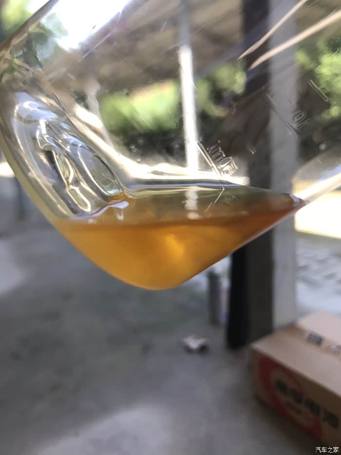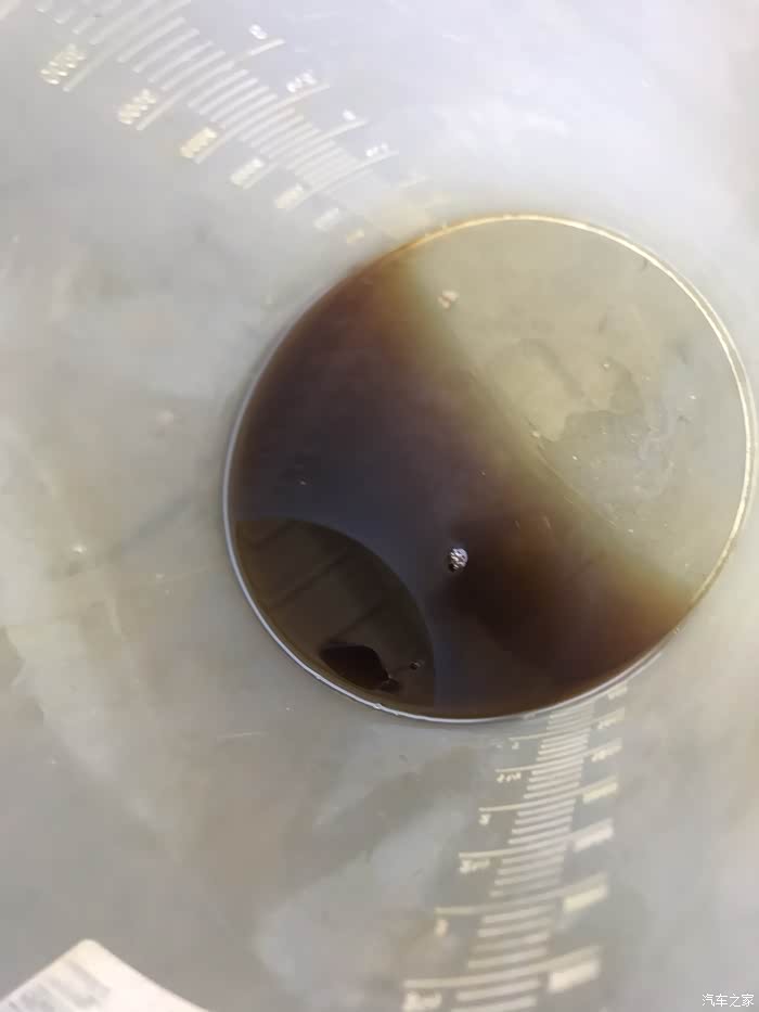 注油时,我使用了洗洁精的按压头,把管口放入加注口,在车底向上推油瓶,一下一下虽比较慢,好在后差只需0.45L,一会儿就完了。