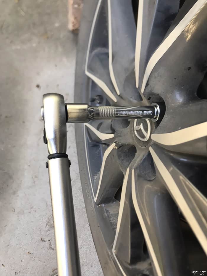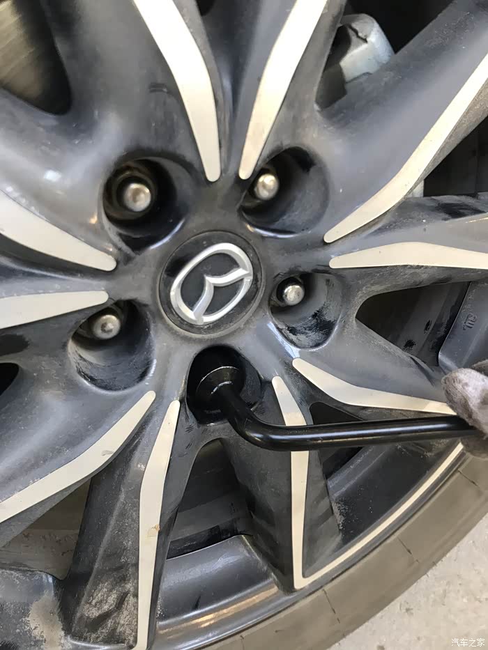 搞完上面这些工作,先用随车工具五角星法把4轮螺丝上紧。待车落地后再上扭矩扳手。