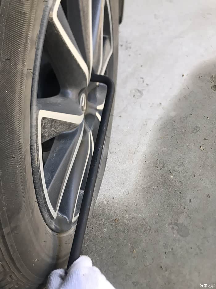 套上21MM套筒,连上撬棍,把4个轮子螺丝先拧松,注意是拧松,不是卸下来。