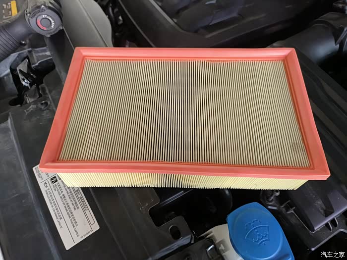 4.空滤这个只进行了简单的清理,用吹风机吹了吹,原模原样的再装回去。然后会对发动机舱进行简单的清洁,就是有点儿过于简单了。