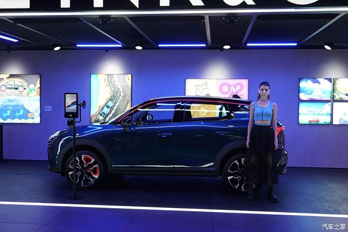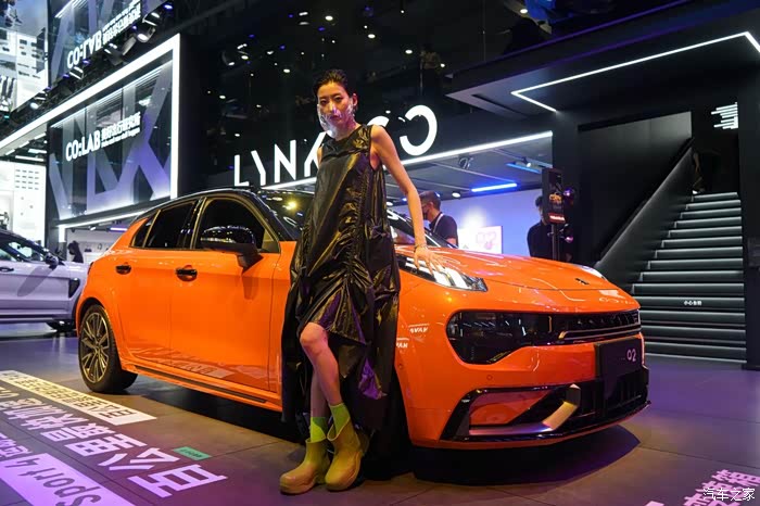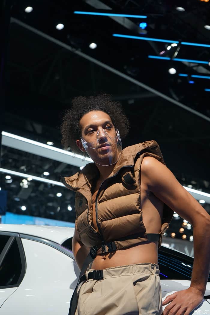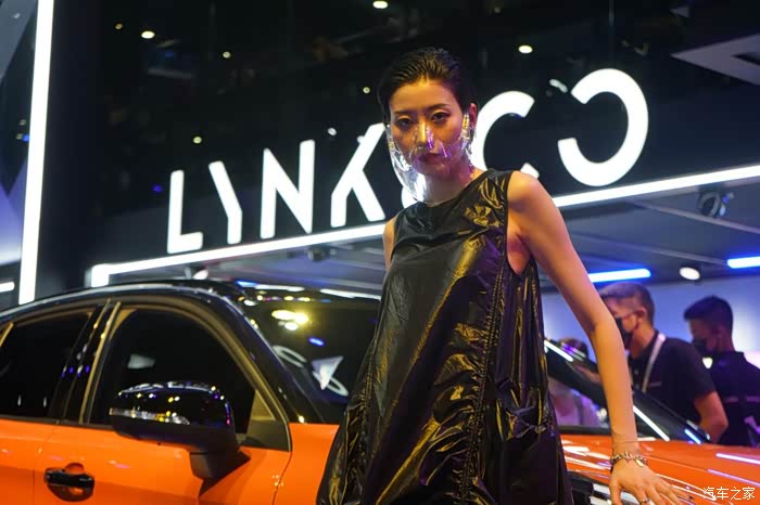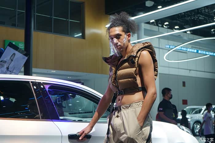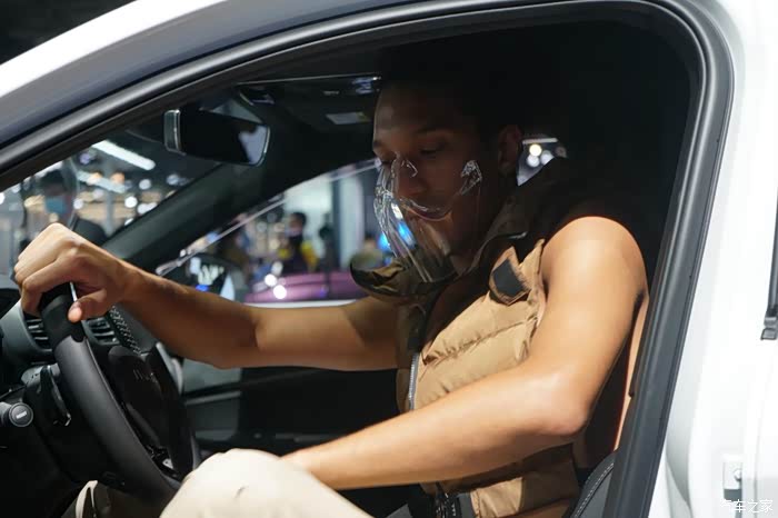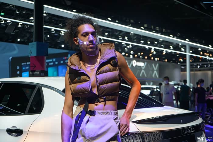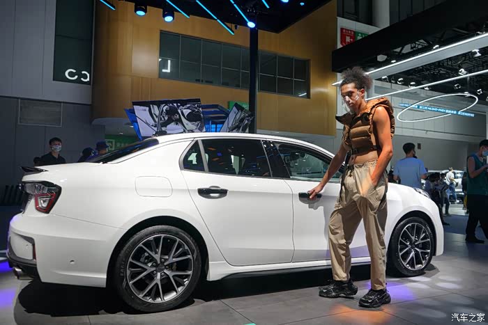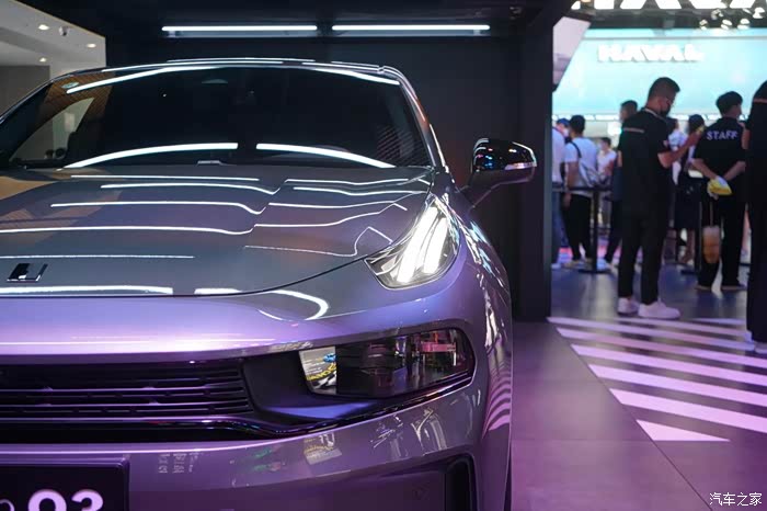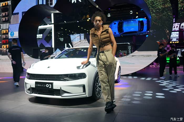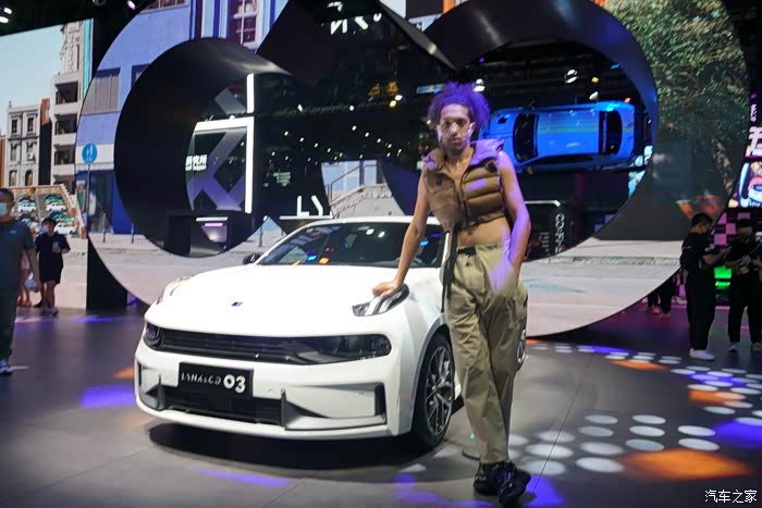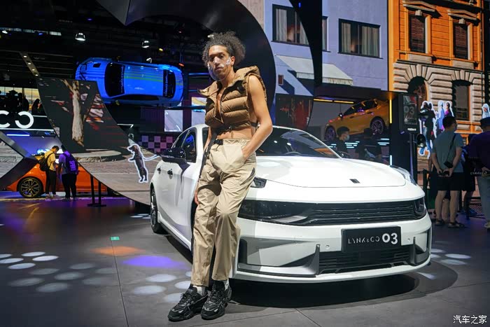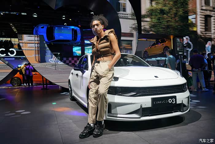现在镜头来到领克展区,在这位外国车模小哥旁边的就是领克03。