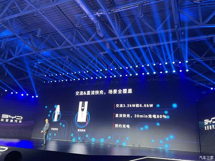 DM-i车型同时支持交流3.3kw, 6.6kw充电和直流快充17kw充电, 可以在30分钟内充到80%,