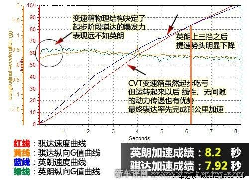 PS:这幅图是我在网上找到的唯一一个把AT和CVT的加速曲线放在一起的,引用这幅图和这两车无关,只是为了帮助我说明我的观点。