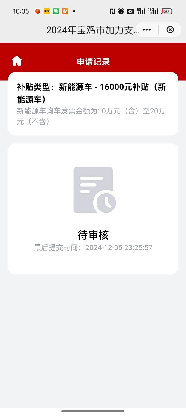 大本下来后,12月5日就提交了新能源补贴申请,每天都在查什么时候可以到账,进度是什么,大家有申请过的吗?好心急呀😳