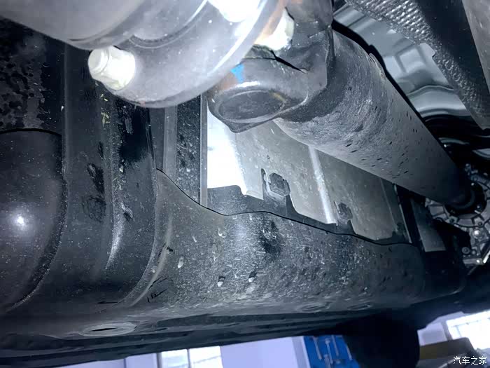 副油箱装好时会被紧紧地压在底盘下,这个地方同样要避免硬碰硬,原厂已有配备缓冲胶皮,我们觉得原厂的差点,又加多了一块更厚的。