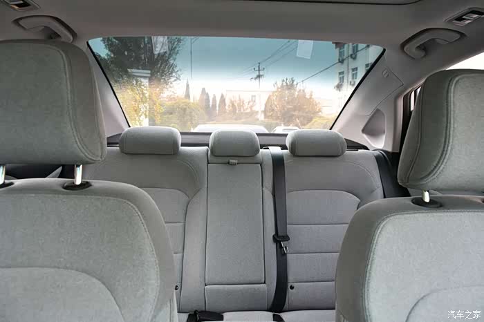 虽然不是全景天窗,但后车窗向上延伸非常多,坐在后排抬头既看天,丝毫没有压抑感