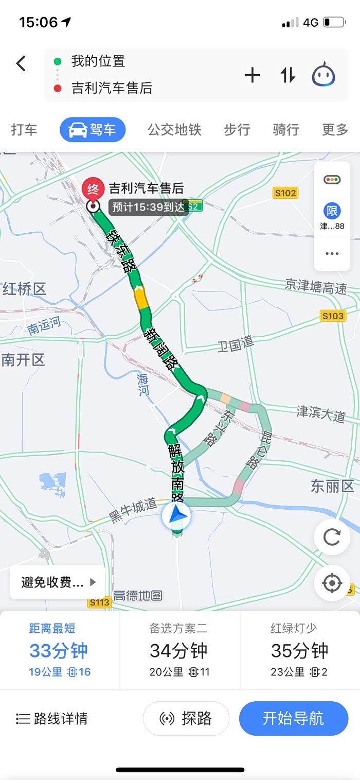 中途打开了车机导航,显示剩余里程16公里