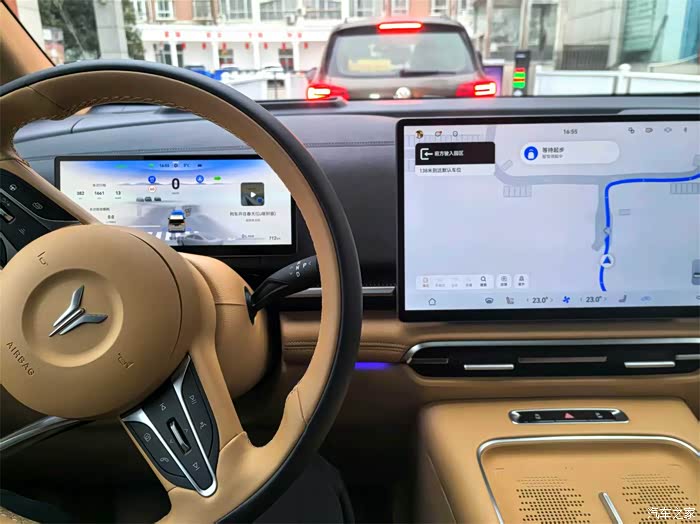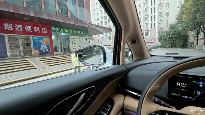 正常开出小区了,中间遇到了很有意思的事情,交通管制,这个时候的梦想家智驾会因为等待时间过长,自己先行退出智驾,后续启动的话可以直接踩加速踏板都能继续智驾。