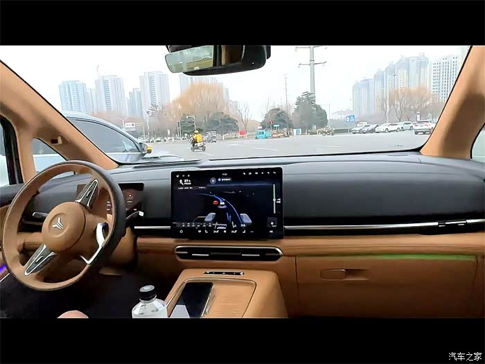 我进入环岛,按照标准模式(智驾的算法要求车辆必须走正规路线绕环岛,所以出环岛时必须到达指定区域才可以出)行驶时,有一辆非友谊的车直接从左边变道超车,我吓得一激灵,直接踩了刹车,事后回放视频才知道,梦想家早都通过探头检测到并减速。我脚踩了刹车退出智驾后,环岛是不能进行智驾领航的,于是我在拐到大路上后,继续开启智驾。