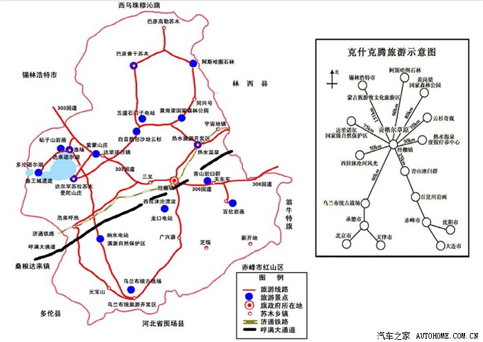 下图为克旗行政区旅游图