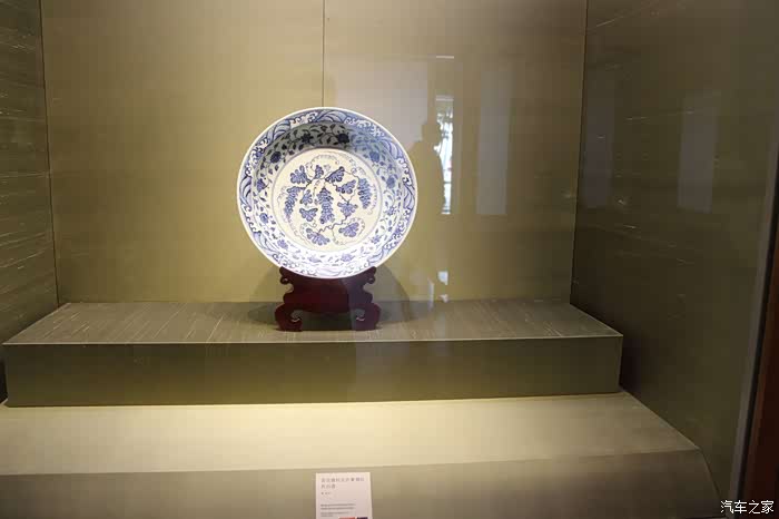 青花缠枝花卉葡萄纹折沿盘。明·永乐瓷器。明永乐宣德时期是中国青花瓷器生产的黄金时代,折沿盘是其典型作品。