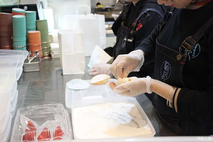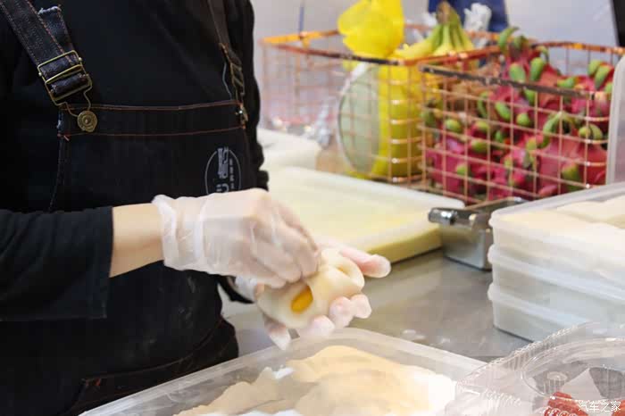 把一块新鲜水果包进糯米糍中