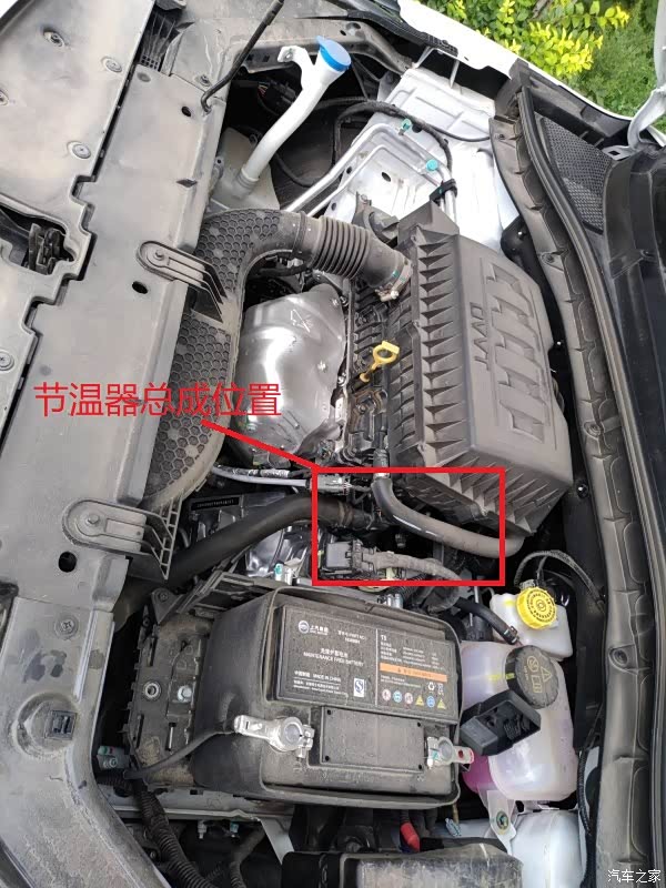 一定要先拆除空气滤清器,避免损坏其他部件的损坏,而且节温器总成的螺丝压在下面