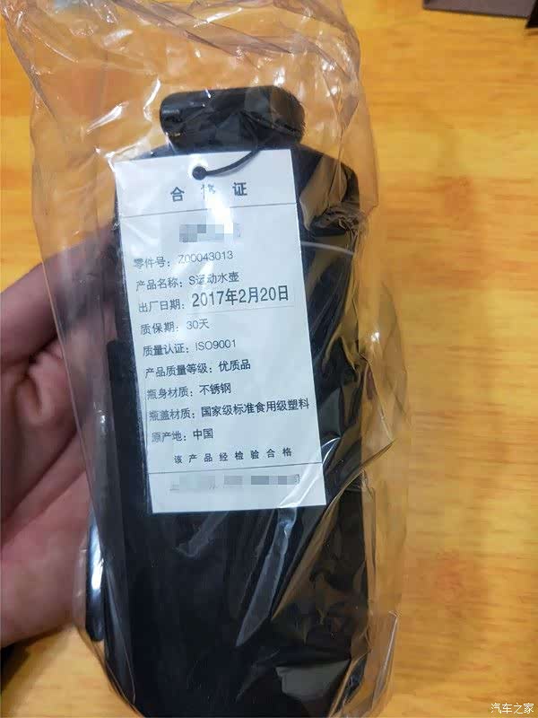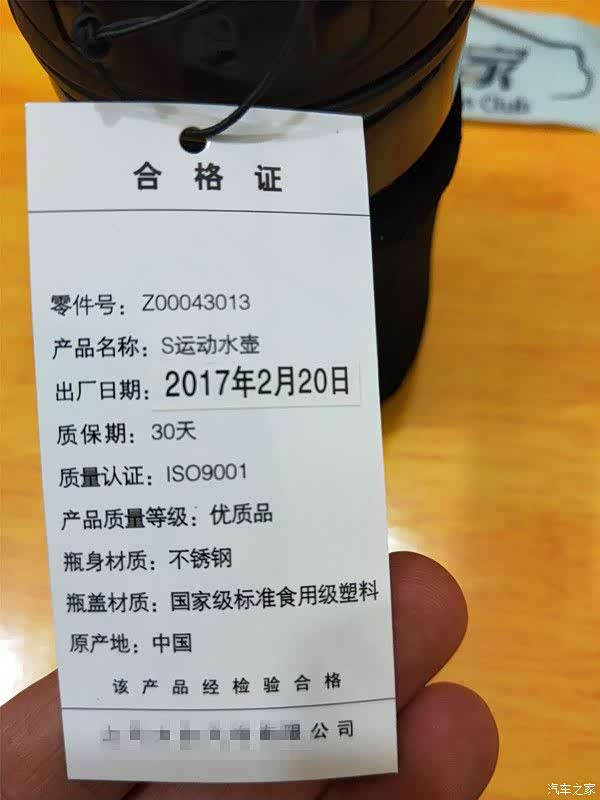 水杯挂有铭牌,铭牌上标出了产品的各项指标。