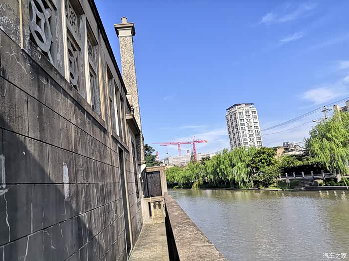 过桥到南岸 沿河可以看到北岸古建筑的全貌