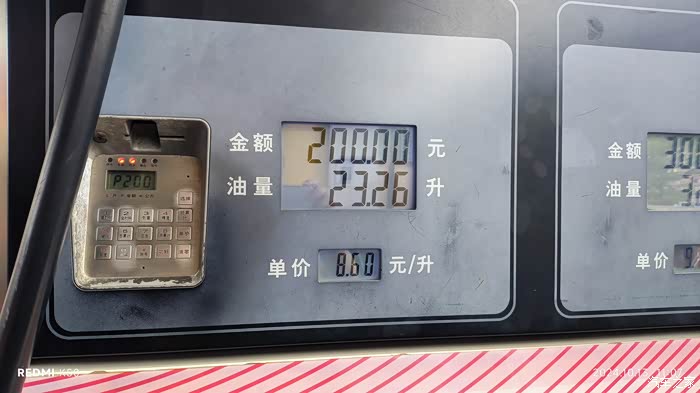 加油后油表显示可持续行驶220公里。