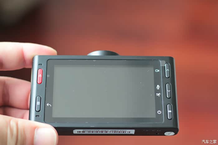 背面左侧上部红色按钮为紧急录影(按下后记录前10秒和后50秒影像存放在独立的EVENT文件夹下不会被循环覆盖),左侧下部为菜单或返回键,右侧上中分别是上下键,右侧下部为确认键或电源键。实际在连接电源线后,发动汽车记录仪就自行启动了,随着汽车的关闭记录仪也会自动关机,记录仪安装后不需要操心,较方便。机子的按键手感偏硬,按键段落明显,按键之间没有松动,做工扎实。