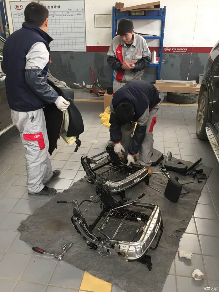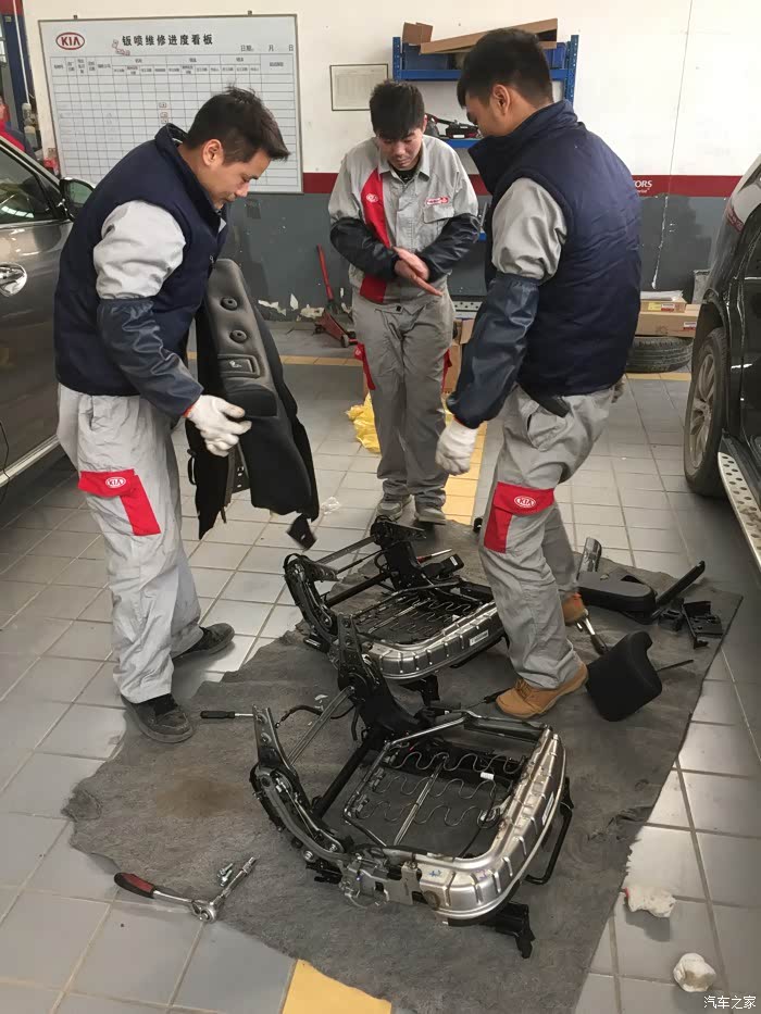 新车刚开到三千公里,首保前一天发现副驾后面的座椅不能放平,正好在首保去4S检查一下,可能是4S维修工没遇到过这种问题,做保养和维修钣金的工人都说正常就这么设计的,真让人心里恼伙,最后和销售人员对峙后才认定是座椅问题,这也说明我车的问题是个案,也不纠结直接索赔,等待一周多终于接到电话说可以更换,原以为更换整个后座呢,谁知道只是更换座椅骨架,因维修工没有经验整个过程持续了接近四个小时,还好最后装上了,一直在旁边观摩,顺便看了下生锈情况,很是严重,顺便看了下旁边上一代索兰托座椅也有生锈,但要比新索好很多,最后4S提出可以做防锈喷漆处理被我拒绝了,主要因为1.想等厂家处理结果,2.喷漆后会到车内造成污染,平时车里多是带孩怕有影响,3.做防锈座椅得被拆掉废时废力整个过程得三天左右,再重新安装座椅紧密性会很差(尤其这次换骨架感受颇深),4.座椅整个靠背的钢板和绒布是被胶粘贴一起的,撕掉不易,会对座椅绒布和外观有严重伤害,所以还望起亚厂家能尽早拿出解决方案,给广大车主一说法