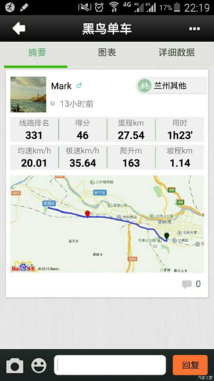 纯新手,没骑过其他好车,入手后骑了两次,感觉非常棒,以今天的骑行图结束本贴