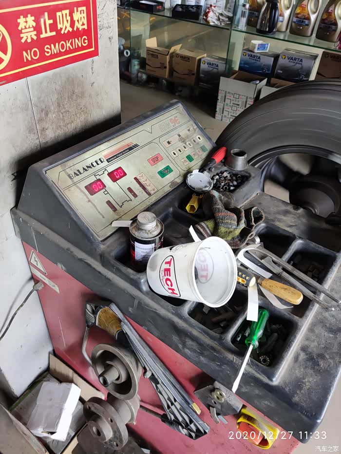 安装好内置的传感器后,开始做轮胎的动平衡