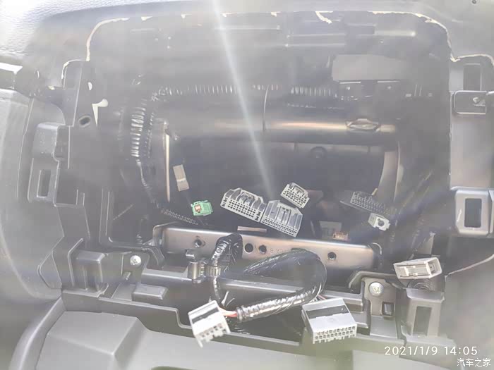 这一步就是要把空调面板和中控屏幕全部都拆下来,这是拆完后的状态。如果不会拆空调面板和中控屏幕的,可以参考我与的另一个贴子《2021款两驱风尚版安装自动升窗器和加装GPS天线作业》,这里就不详细描述了。