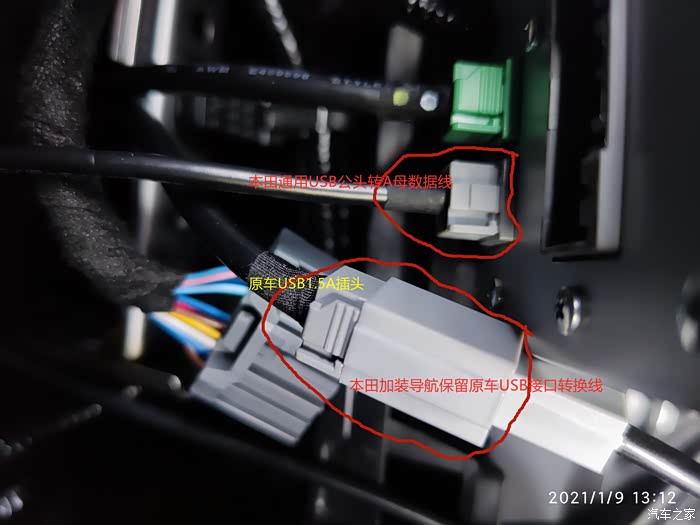 最后终于实现了两个能够进行数据连接USB口,一个放胎压监测接受器,一个放U盘音视频,两者同时和谐共存,非常完美!!