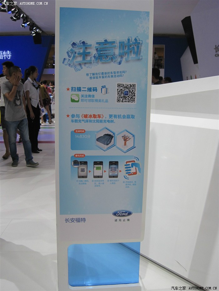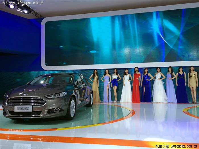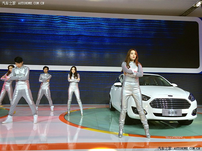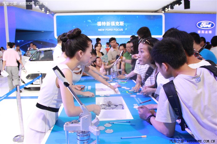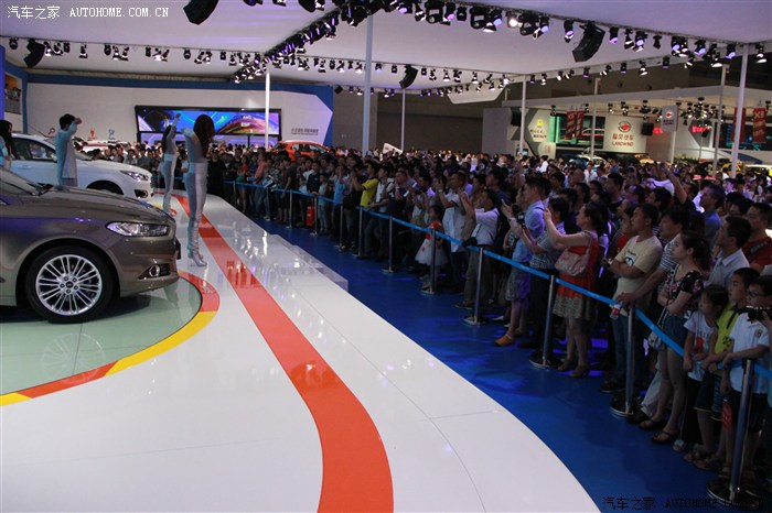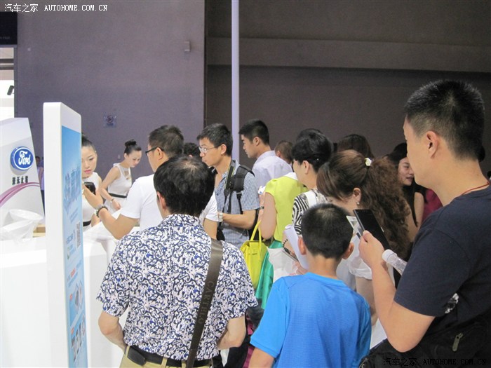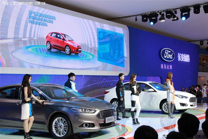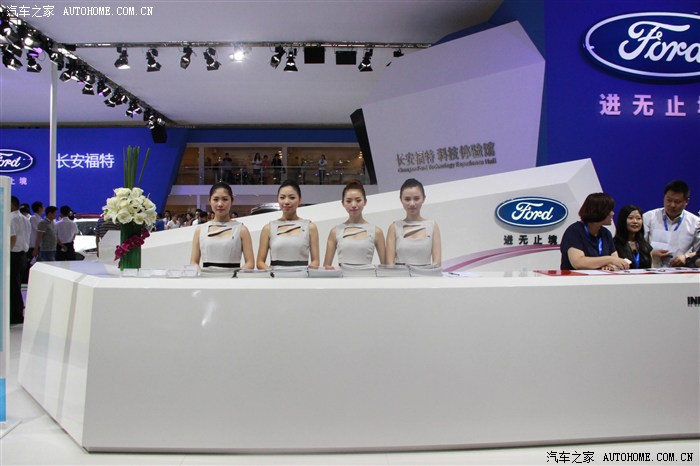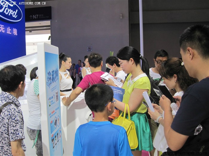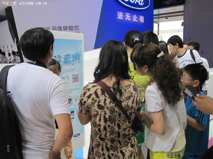 我只是凑热闹的,最开始当然是奔着豪车去的,无奈和我一样想法的人太多而且还比我行动得快,只好战略性放弃,先去其他馆看看。来到N8馆,长安福特正在进行新车福睿斯的西部首发会,现场围了好多人,给我的直觉就是这里肯定有美女!然后的然后我就驻扎在这里了
