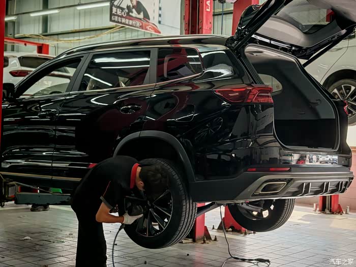 不得不说,现在的奇瑞销量提升明显,保养的车辆比之前多了不少,排队是常有的事。好在不到半个小时就轮到我上架了。