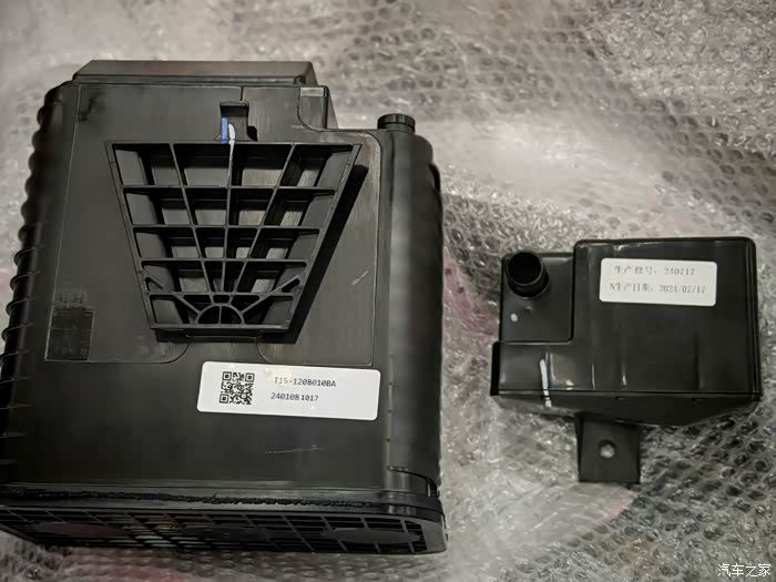 这就是全新的碳罐(左侧大盒子)和过滤器(右侧小盒子)