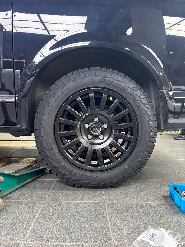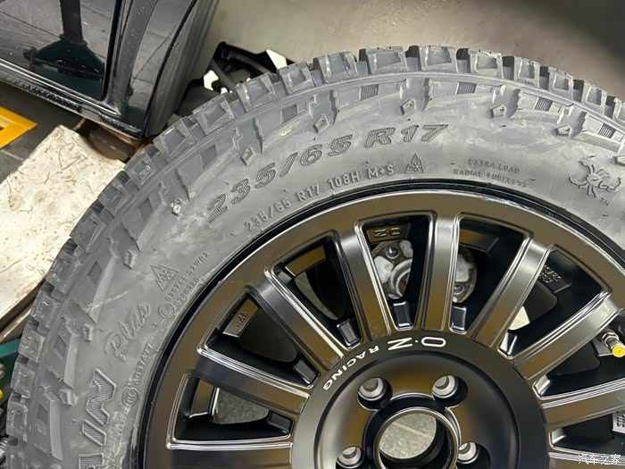 2、选择轮胎:买不到固铂的235 60R17 AT 4s,后来选用了国产 倍耐力的235 65R17 ALLTERRAIN蝎子 ,说实话这个规格的轮胎还真不多,也不好选——有些花纹太狂野没必要,有些是载重指数不行、有些感觉制造技术不行。原车是255 45R18 韩泰,扁平比低、太震、路感好的过头,非铺装路面得小心翼翼开。