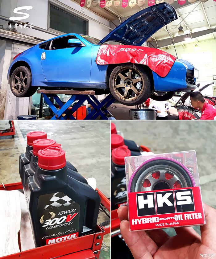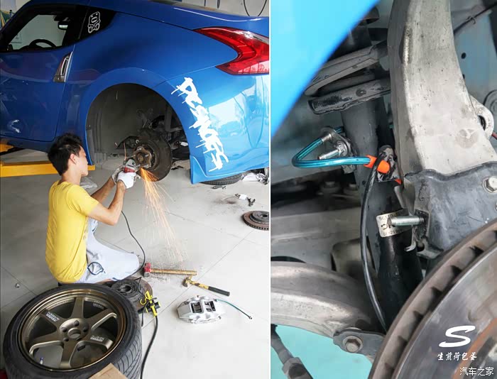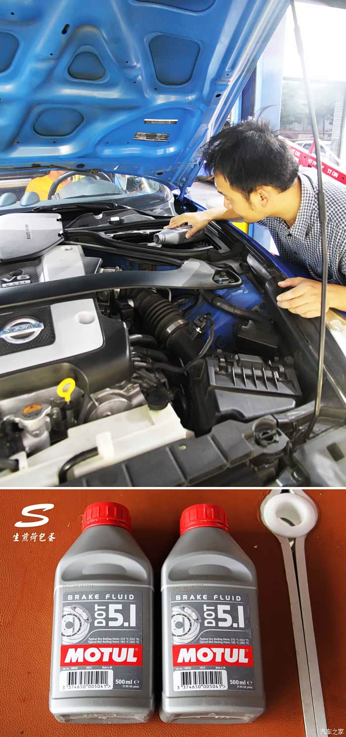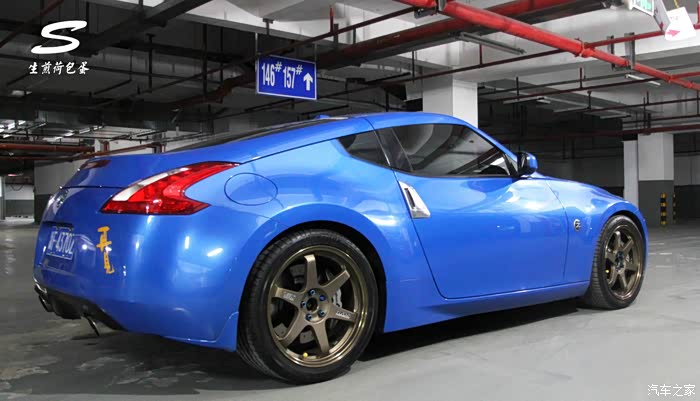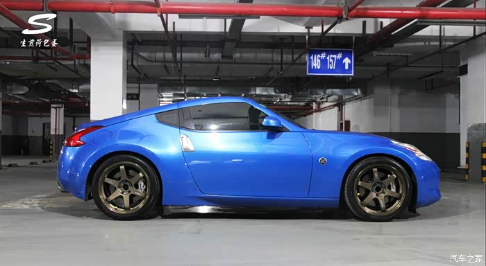 储物空间绝对是370Z的硬伤,后备箱容积仅为195L,平时只能放置一些小型包裹,航空拉杆箱基本不用考虑了。。 长度还不足4.3米的,还装着V6引擎的长长车头好像就占了快一半,幸亏采用双座布局的它没让那种鸡肋的后排占据更多的空间,乘坐空间还是非常宽敞,毕竟是双门两座,真皮运动座椅包裹性出色,局部翻毛设计,摩擦力大,并支持四向电动调节,调节按钮在座椅内侧,有点像奔驰AMG系列。 为了深度了解下370Z的操控和底盘调教,我和江苏的小伙伴们组队去了南京万驰国际赛车场。。 通过赛道的检验,更加全面的了解了370Z,在这里跟大家分享一下我对她的认知。。 在驾驶370Z之前,我也认为370Z与G37S是同门姐妹,最明显的差别仅仅是2座和4座的不同。结果并非如此,这两款车有着千丝万缕的联系,却又天差地别。 2. 同样是7AT,设置不同,370Z上的调教追求高转,市区代步正常加速换挡都会在3200转以上,如果大油门起步变速箱升档慵懒,不到5000转以上一般不会升档,降挡却比较积极,顿挫明显,这与G37相对平顺的换档有很大区别。另外有一点不同的是,370Z上没有G37的DS档,370Z上的模拟手动,只能用方向盘换档拨片换档,无论转数多高或多低,变速箱都不会自动加减档,而在G37上的DS档变速箱在驾驶员没有及时换档时会自动实现档位切换。 3. 370Z底盘调教更加硬朗,全车原厂便设有不少拉杆,比如引擎舱的三角支架以及后备箱粗壮的拉杆。这套双叉臂前悬挂加多连杆后悬挂就是天生的跑车骨子,但在实际的使用过程中还是感觉偏软,日常使用舒适性不错,应对赛道还是有点力不从心。 4. 排气声浪不同,虽然这两款车的排气都算不上高亢,但370Z在4000转之后就会感觉通了排气阀门一样,分贝突然提高,而且两车的排气也不通用,让人诧异的是,370Z的排气尾鼓和G37S的尺寸差别较大无法通用,反而是跟作为SUV的FX35的尾鼓接近。。 5. 370Z的稳定性更高,虽然原厂轮胎是前225/50 R18,后245/45 R8,轮胎我升级为了PSS,抓地力很不错。在驾驶过程中稳定性出奇的好,平时在高速行驶时也一样,变道稳健,方向感扎实,这点和G37很不一样,我的G37轮毂已经升级到了前245/40 R19,后轮275/35 R19,还是感觉方向太灵活,高速变道有点飘。 补充说明:在2012年以后,英菲尼迪G系列的马力数值从325P统一更改为351P,这仅仅是计算方式的偏差,实际马力相同,具体请百度。。 370Z在操控加速上都比G37更激进,G37在配置舒适性上比370Z更实用。。 370Z的不足: A、原厂刹车实在狗血,感觉比普通天籁上的强不了多少,赛道三圈以后基本丧失制动力,有两次差点滑出赛道,这个必须得换。从小贸进口的2013款开始配备鲍鱼代工的前四后二卡钳制动力会提高一个级别,但是也只能算是勉强够用.. B、原厂避震悬挂不够硬朗,可能是我过去开了太久EVO和STI,习惯了坐在钢板上的感觉,370Z的避震感觉有点偏软,日常舒适性不错,但激烈驾驶时还是会有侧倾,据说NISMO版本上的悬挂硬度提高了20%,相信支持性会更好,原厂悬挂有必要升级。 C、内饰配置较低,尽管有6碟CD,4向电动座椅,BOSE音响,一键启动等常规配置,我也可以理解作为一款驾驶者之车,舒适性配置不用过分讲究,但是在这个价位级别还是乞丐版却是不厚道,我开始怀念EVO和STI上的包裹性极佳的RECARO座椅了。。差点忘了911都有天窗,370Z却没有,不过原来的EVO和STI都没有,也就罢了吧。。 D、储物空间严重不足,尽管我对跑车的实用性有心理准备,但是370Z的储物空间还是让我震惊了,后备箱195L的容积让我石化了。 E、动力只能说够用,账面数值和成绩都不错,但是在动力提升上,由于自然吸气的关系,不跟吃兴奋剂的涡轮车相比,常规的换进排气对动力提升微乎其微,大幅度提升一般都要用加装机械增压的方式,相比大众奥迪的EA888刷个电脑上个二阶程序就能大幅度提升,370Z在动力方面的升级成本高得多。 F、离地间隙仅为12cm,这个数字已经达到了法拉利458的水平,前保险杠离地间隙太小,原厂避震又不是很硬朗,每次下地库都是龟速,即便是这样,在过一些起伏路段时还是让人胆战心惊。 针对明显的不足,开始改装。。小改怡情。。 轮毂轮胎必须升级。。起初想选择WORK SP1,三片式宽边效果,追求的有点类似VIP风格。。 考虑到后期无法升级大六卡钳,所以将目光转投到经典RAYS TE37,虽然TE37现在基本烂大街,但是我还是觉得这款轮毂接近百搭。 朋友的TE37 SL上身,感觉白色车更配这个轮毂。。 几经辗转,我选择了TE37 古铜色,前8.5J,后9.5J,ET22*114.3 由于这套螺丝不带防盗,我又单独配了四个防盗锻造螺丝。。 轮毂换完了,就该上刹车了!! 刹车最初选择的是鲍鱼GT的前六后四,前轮380mm的碟,都定了,后来还是取消了,原因是鲍鱼国内假货实在是太多,有时候卡钳是真的,钢喉是山寨的,碟是台湾的,380mm的碟又容易抖。。 无奈放弃了。。 最终选择了英国ALCON的前六后四刹车,全套进口原装,前后350mm碟,前轮浮动碟。。原厂后轮需要切割防尘罩。。 装卡钳也是一波三折,朋友介绍的改装店水平实在是。。鱼钩碟朝向装反,我及时发现调整好了,但安装小哥说钢喉不对,太长,前轮容易刮擦。。我也是醉了,这是原装原配的。。。 所以第二天我跑去斯巴鲁,找了我原来的翼豹特约师傅,发现是改装店的小哥钢喉走线错了,及时调整保护。。只是这一来一往,又浪费我一瓶DOT5.1刹车油。。 刹车油由 嘉兴摩特总代理 直接上门服务。。亲自添加。。