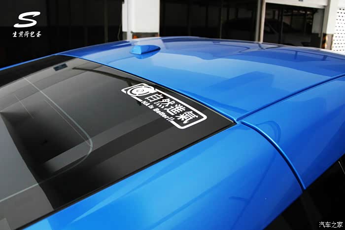 前格栅下端和后包围下端本来都是和车身同色的蓝色,我把它都贴黑了,感觉进气口扩大了,车尾也更有层次感,这得感谢下 CA汽车形象设计 的技术支持!