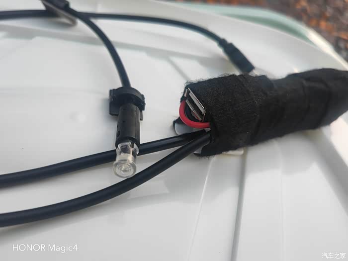 用绒布胶带把线缠好,进行安装
