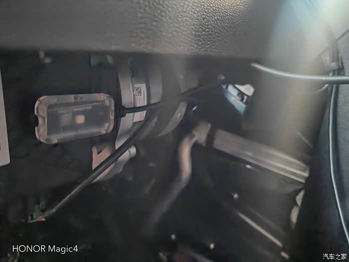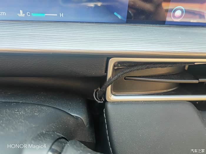 中控部分,是反贴在出风口最上面,从方向盘空隙处走线