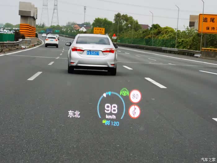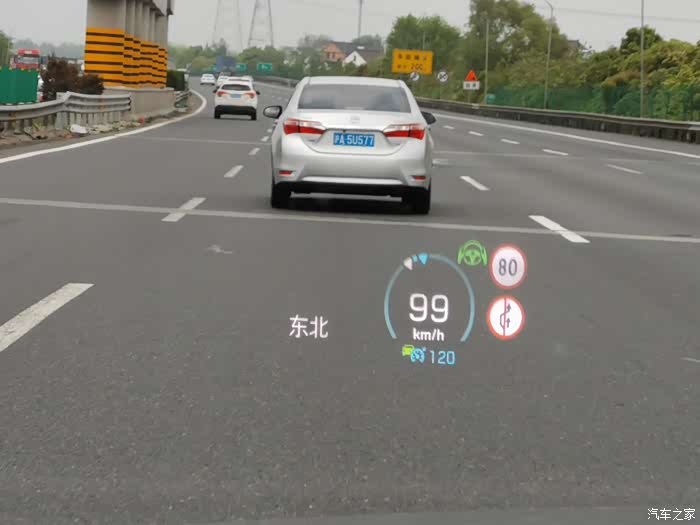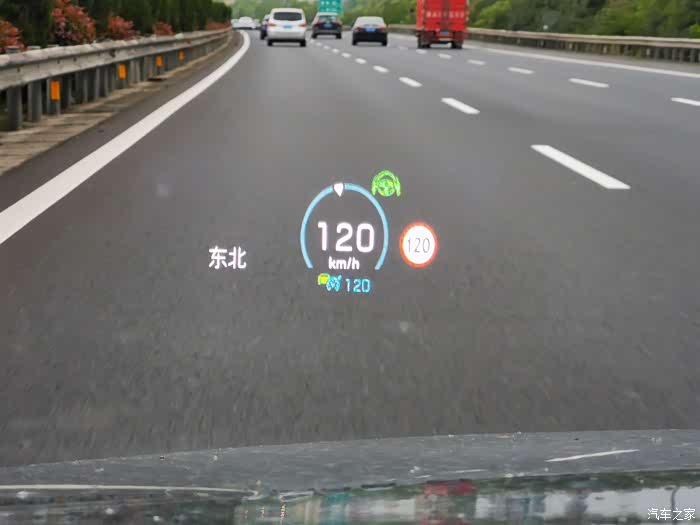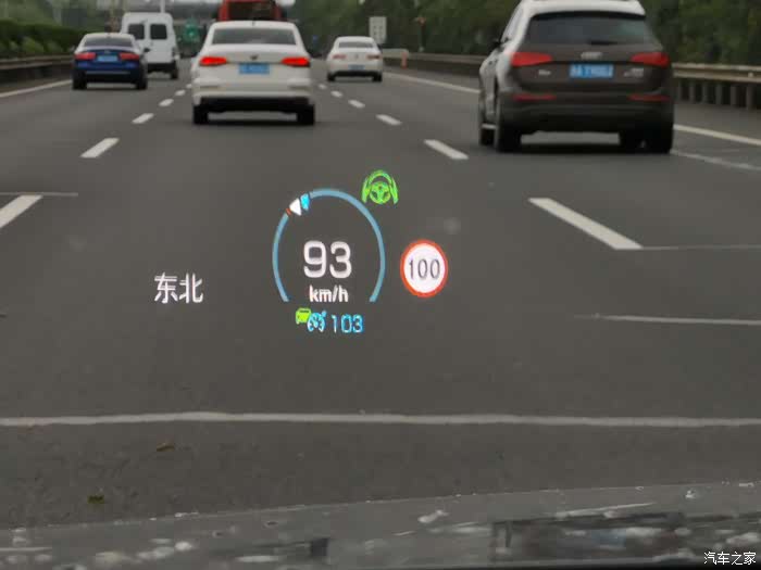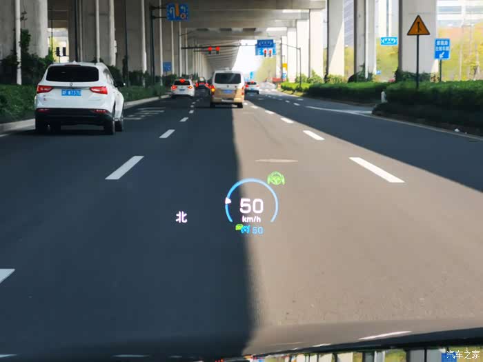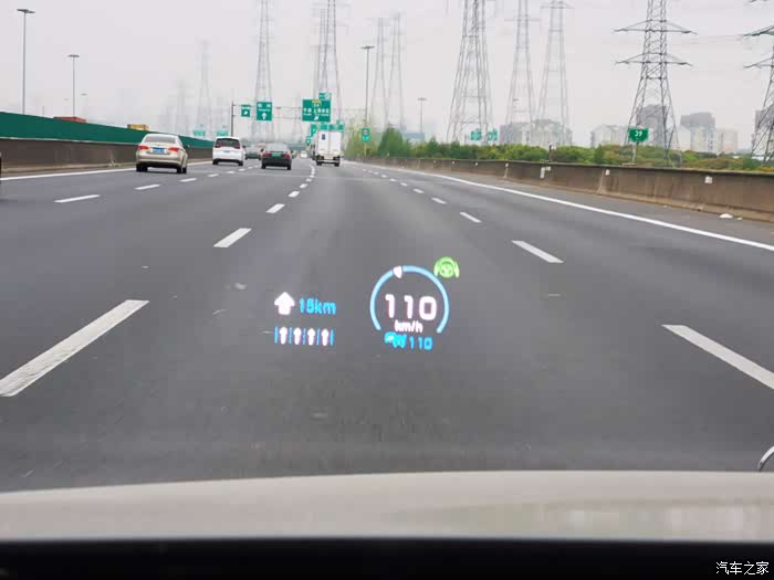 刚提车时的HUD显示,这个是开启了自动驾驶模式下的显示内容。