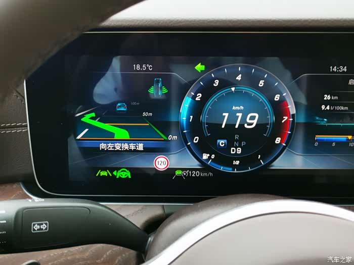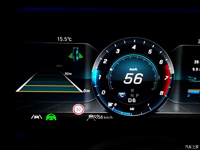 重点来了,找车友帮忙刷了系统功能,仪表盘显示限速标识。这个限速标识是前面讲到的前挡玻璃上那个摄像头扫描路上的限速标志打出来的,和地图左上角那个限速标识不是一回事。