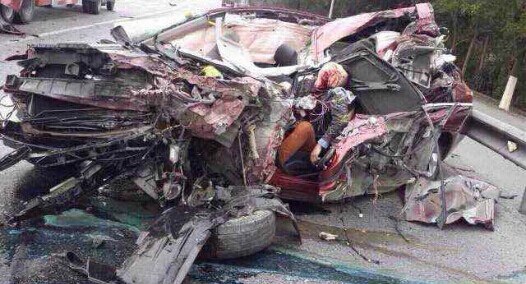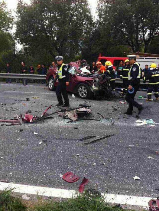 海宁周王庙陈岸货车与一本田歌诗图相撞,现场惨烈 。小车严重变形司机当场死亡。现场惨不忍睹。
