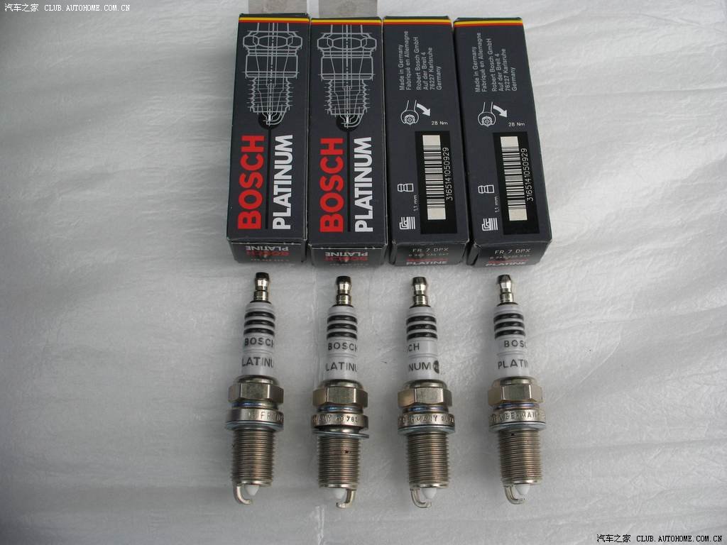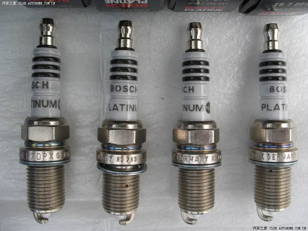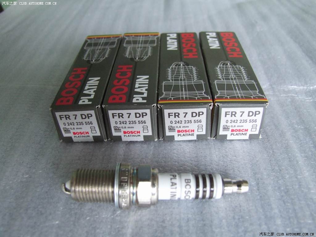 新火花塞登场,型号:BOSCH FR7DP, 放电间隙:0.6mm 。