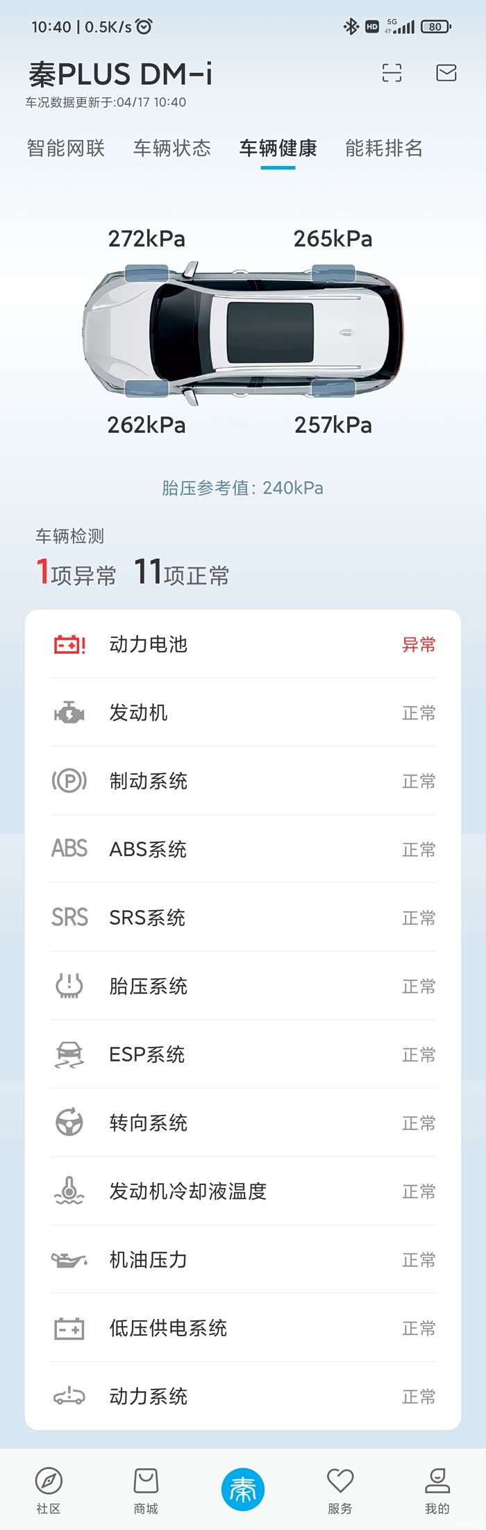 今天跑高架HEV模式出去玩,下高架后一段距离,等红灯起步的时候感觉很肉(10点40左右),就打算切回EV模式,怎么也切不回,仪表盘上当时没信息,但是手机app上显示动力电池,等红灯时,又手动熄火了几次车,每次启动后发动机就自动启动,手机app显示动力电池异常。到玩的地方后,路边停车。下午16点左右开车准备回家,故障自动消除。实则11点10分左右打开手机app看的时候已不显示动力电池故障。但由于在玩也没管。