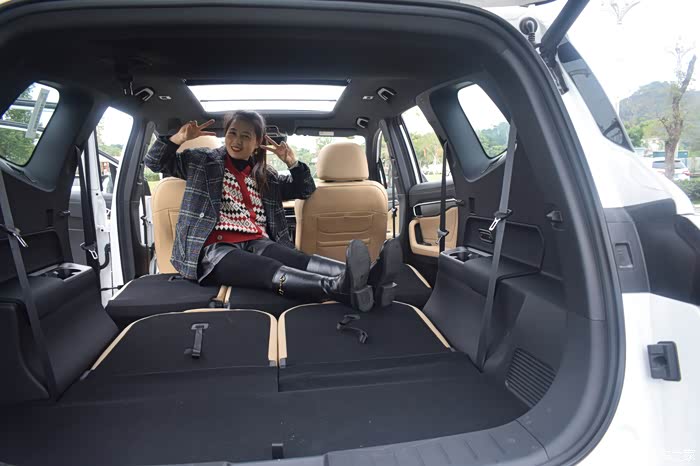 得益于豪越L的车长,座椅全部放倒以后的实用性大大的提高,夏天的时候,可以去海边露营,大大的天窗,大大的”床”可以浪漫的躺在车里看星星