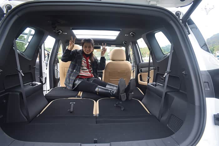 座椅可以全部放平,这样变成了一个超级货车,可以满足日常的需求,以后都不用喊货拉拉了