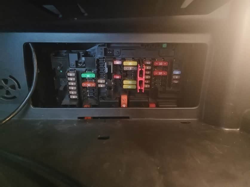 过年了想要用车载吸尘器给车子搞卫生,发现后备箱的点烟器没电,打开手套箱里的保险丝盒,找不到说明保险丝对应的功能。哪位大神有知道的?
