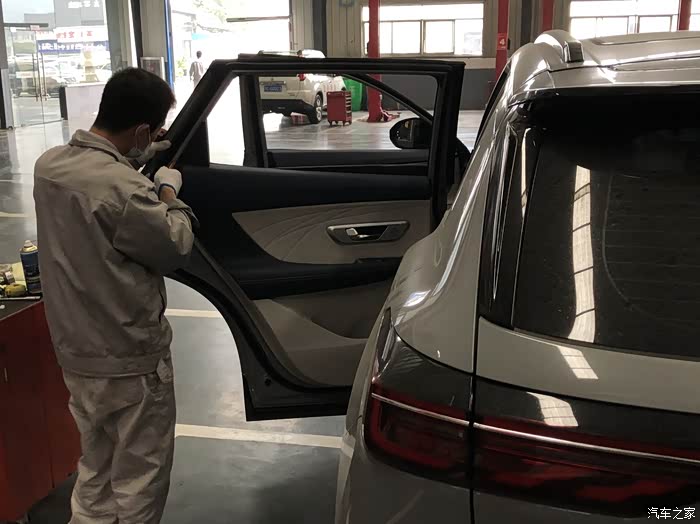 在经过四五十分钟的拆卸调试后装了回去,但好像问题并没有解决,因为恰巧旁边停着一辆新车,一对比就能比出来差距还是有点大的,异响的情况仍然存在。于是销售的总负责人就给厂家打电话联系了一下,并且把我车的升降机存在的问题,拍了个视频给他们发了过去。这会看来需要是更换窗户的升降器才能解决问题了,然后师傅就把全部零件给我安装完好。销售让我先回去等等,零件到了后再过来帮我安装好。