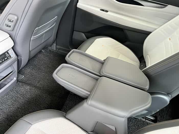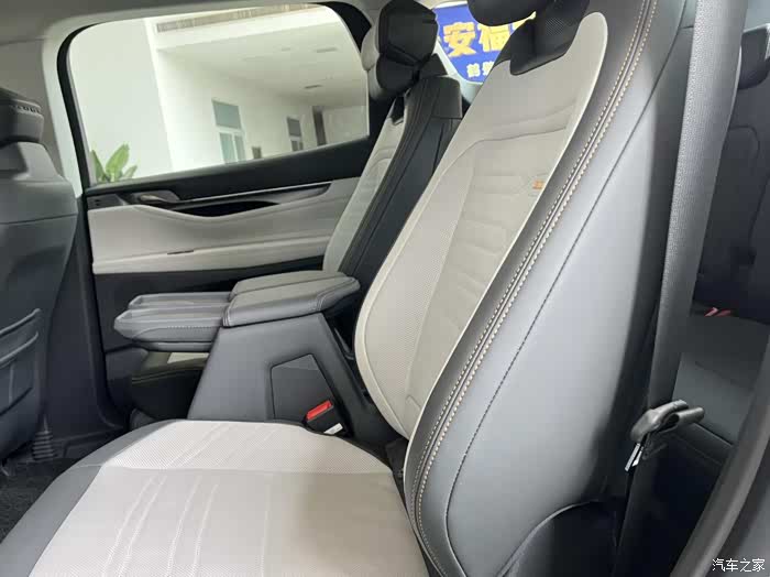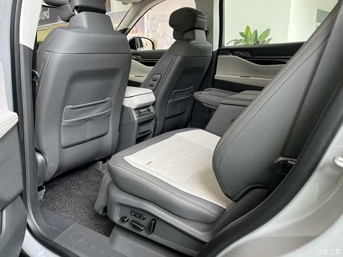 2+2+3座椅布局最大的优势就在第二排,两个支持电动调节的独立座椅不管腿托、靠背还是座椅位置都能单独控制,座椅中间的扶手放下来可以无线充电,收起来又能直接从过道进第三排,省去了2+3+2布局进第三排需要折叠二排座椅的麻烦。