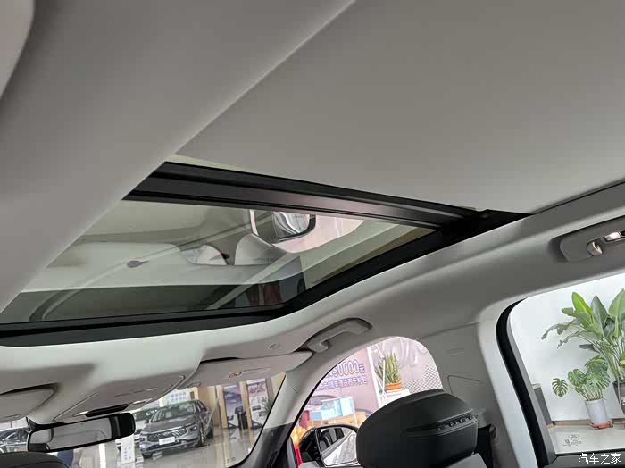 全景天窗覆盖的面积很大,遮阳帘打开之后就算坐在第三排也能享受到很通透的采光。